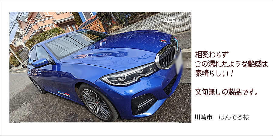 WAX 感覚なので失敗が無い。高級陶器のように変貌した愛車を眺め