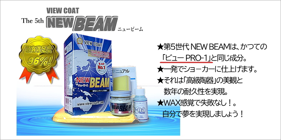 2003年から5回のバージョンアップを遂げたNEW BEAMは、かつてビューコートプロ専用版だったコーティング剤のPRO-1 です。