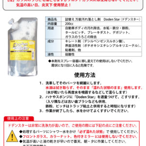 [詰め替え用袋入] 万能汚れ落とし剤 Doden Star (ドデンスター)/200cc 【メール便対応商品】 (VK-021) 定価(税込)¥1,870販売価格(税込)¥1,870在庫状態 : 在庫有り 発送方法 : この商品のみご注文の場合に限り「メール便」をご利用いただけます。お買い物カートへ進み【発送・支払方法】画面で「配送方法」→「メール便」をお選びください。 メール便 対応個数 : 2個 メール便 発送 対応個数 【 2個 】まで メール便発送 対応個数 【2個】まで 数量個